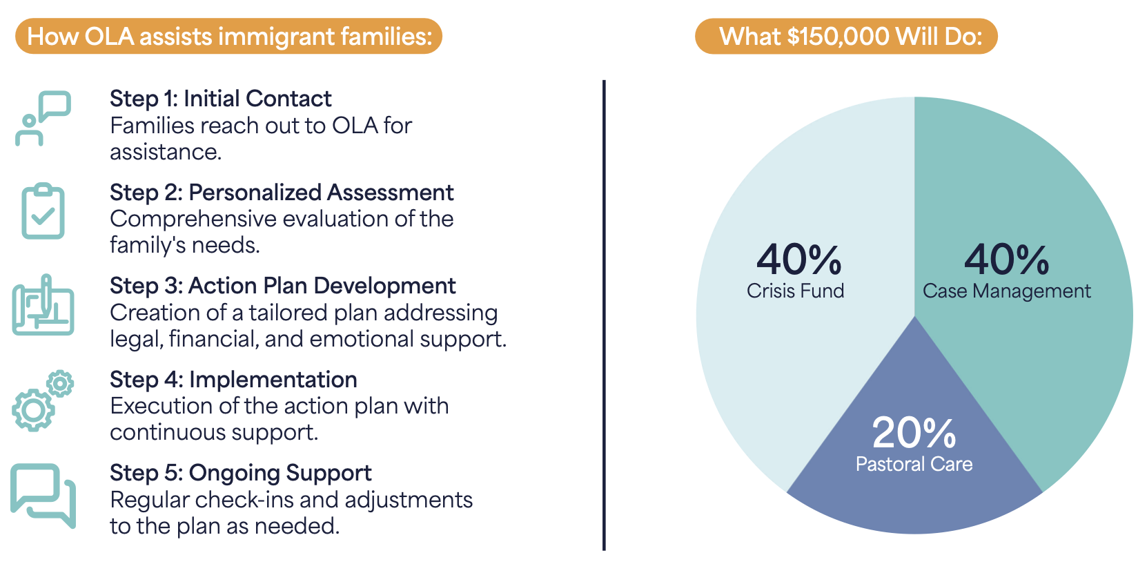 Your gift to Ola Immigrant Welcome Center provides critical support, from essential assistance and English learning to legal navigation and community support. With your generosity, families can thrive rather than survive.